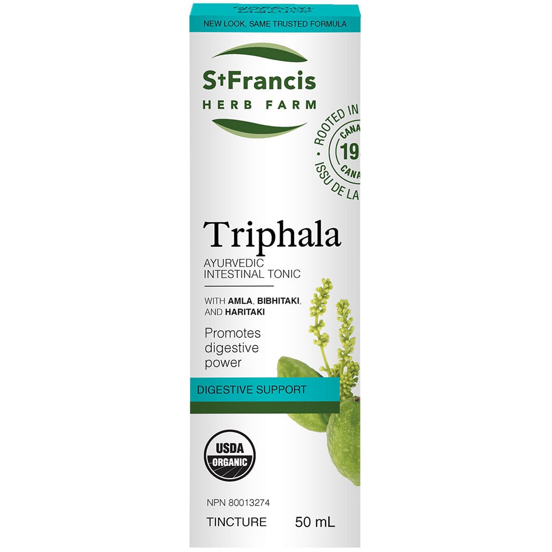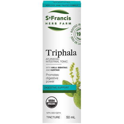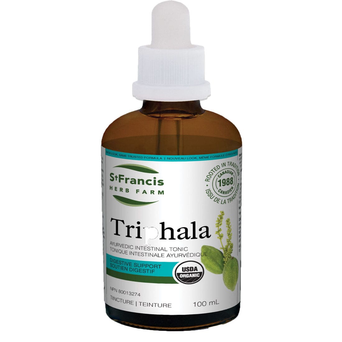 Take 4-6 ml (120-180 drops) of St. Francis Triphala once daily in a little water approximately 2 hours after the evening meal.