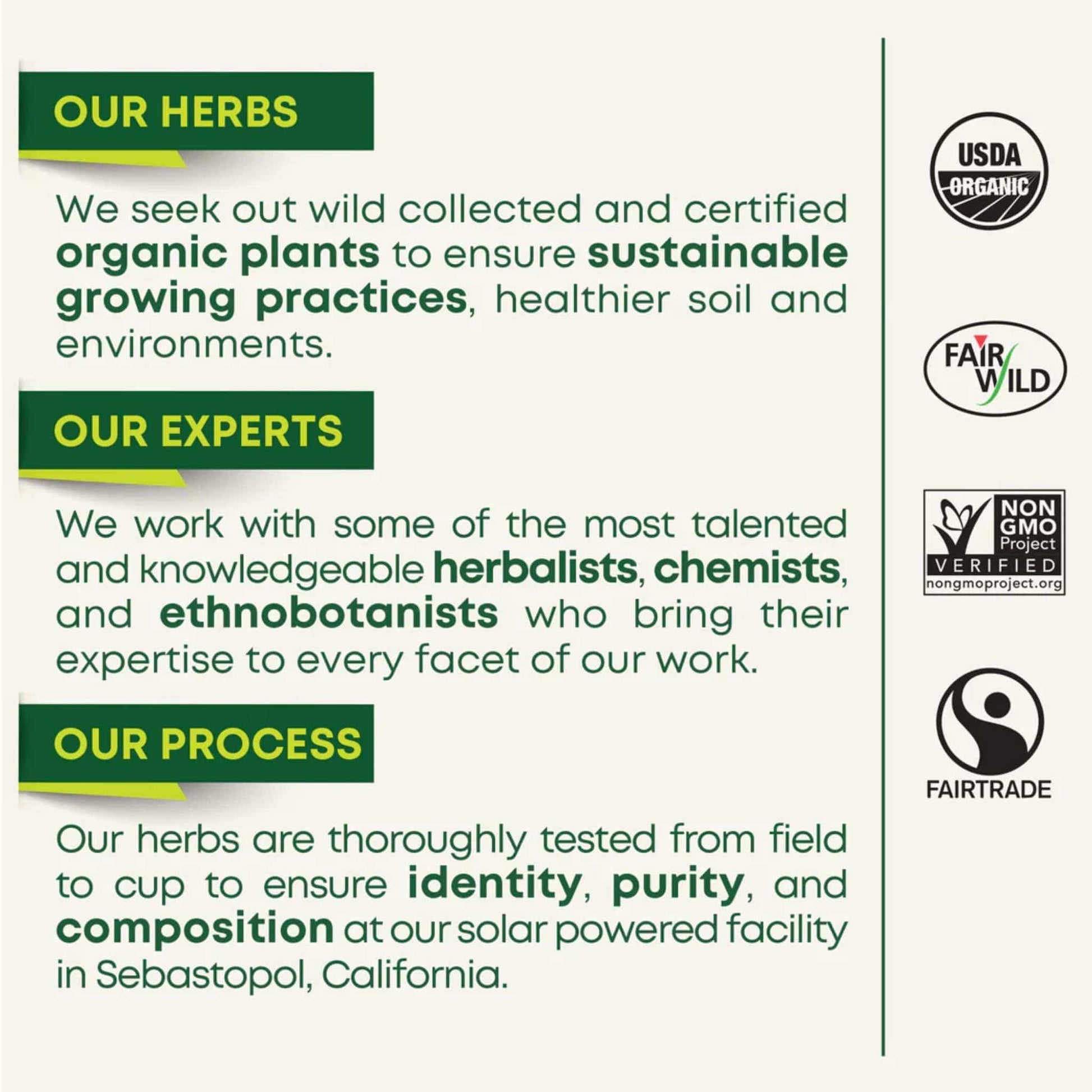 Echinacea and elderberry have long been prized by Native American tribes for their immune-stimulating properties. Traditional Medicinals' herbalists have combined these powerful herbs to create a tasty herbal tea that makes it easy to incorporate immune support into your daily routine.