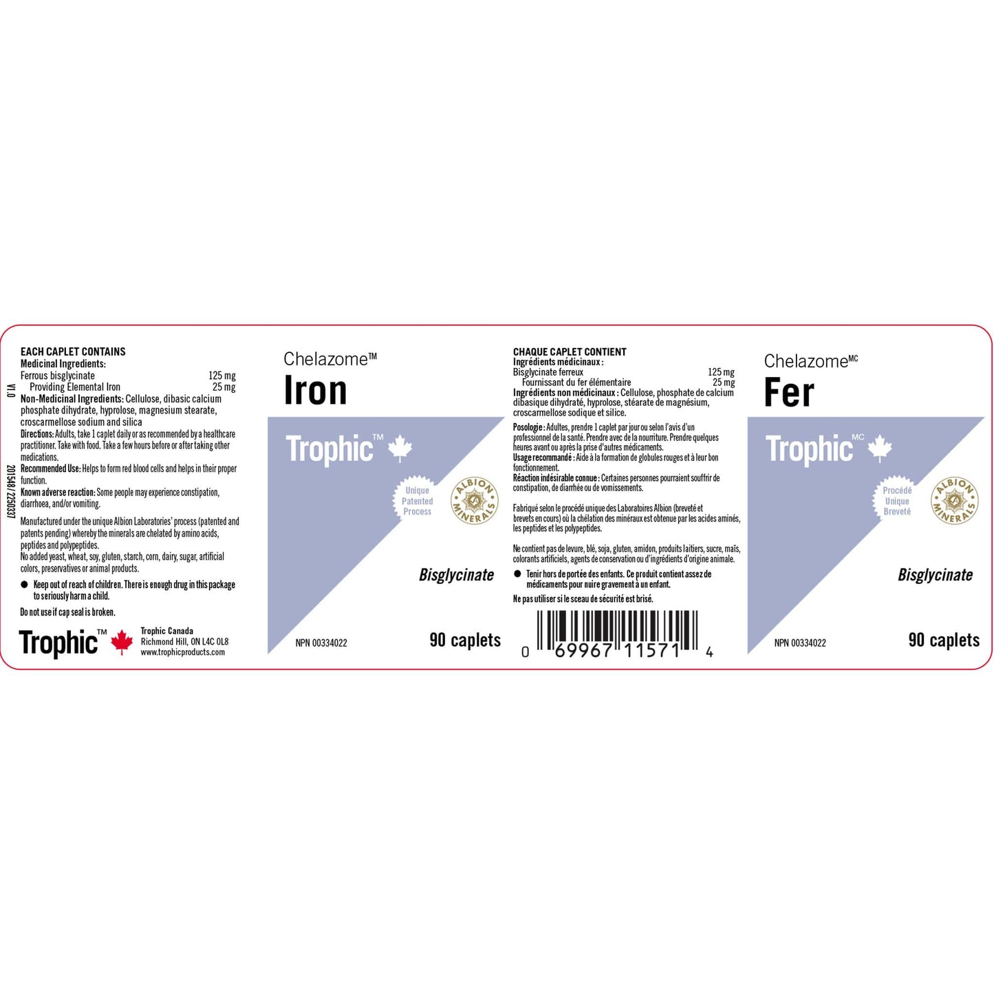 Trophic Iron Bisglycinate 25mg (Chelazome), 90 Caplets