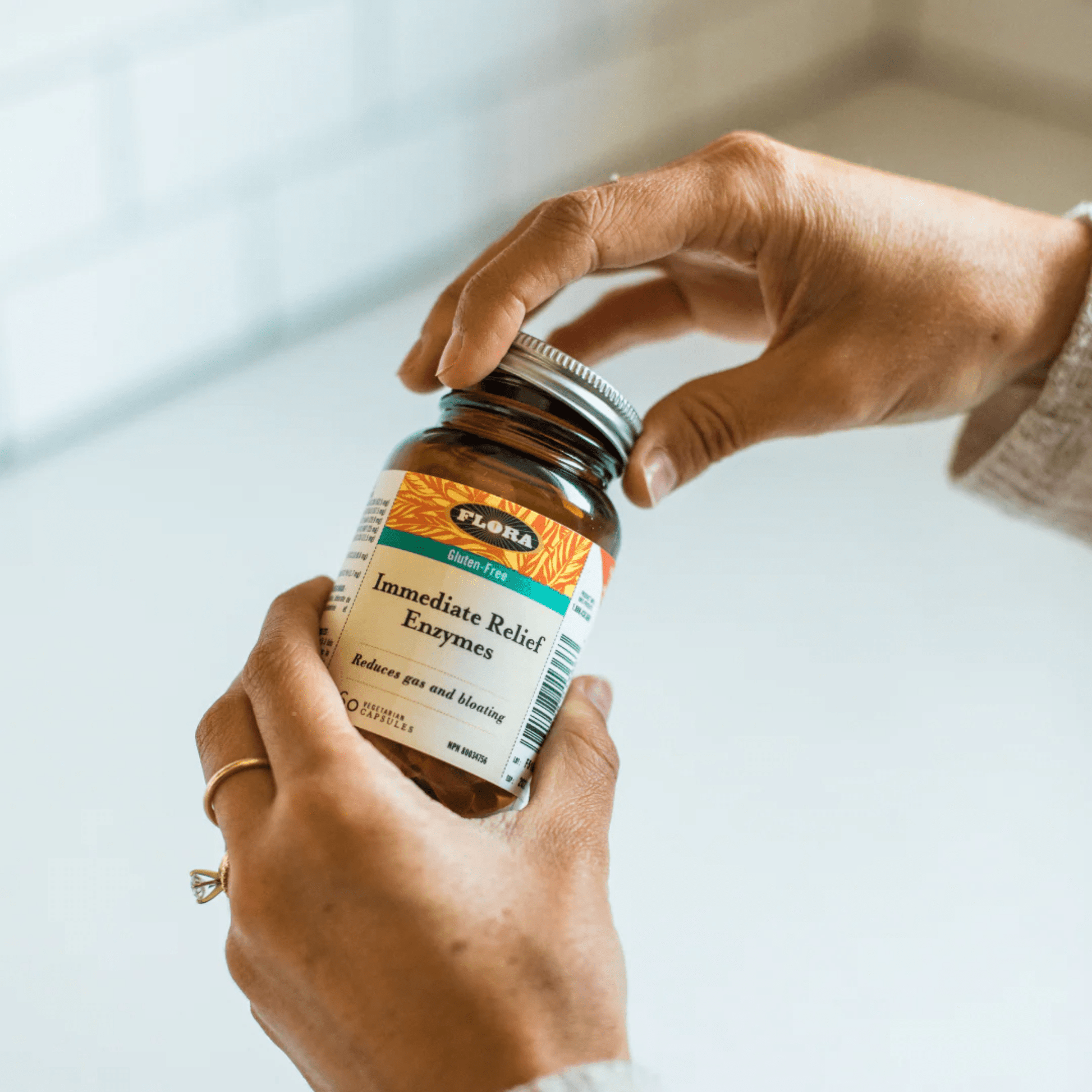 Take 1-2 Flora Immediate Relief Digestive Enzymes capsules, up to 3 times daily. Take 1 capsule with the first bite of food/meal. For a heavy meal, take an additional capsule.