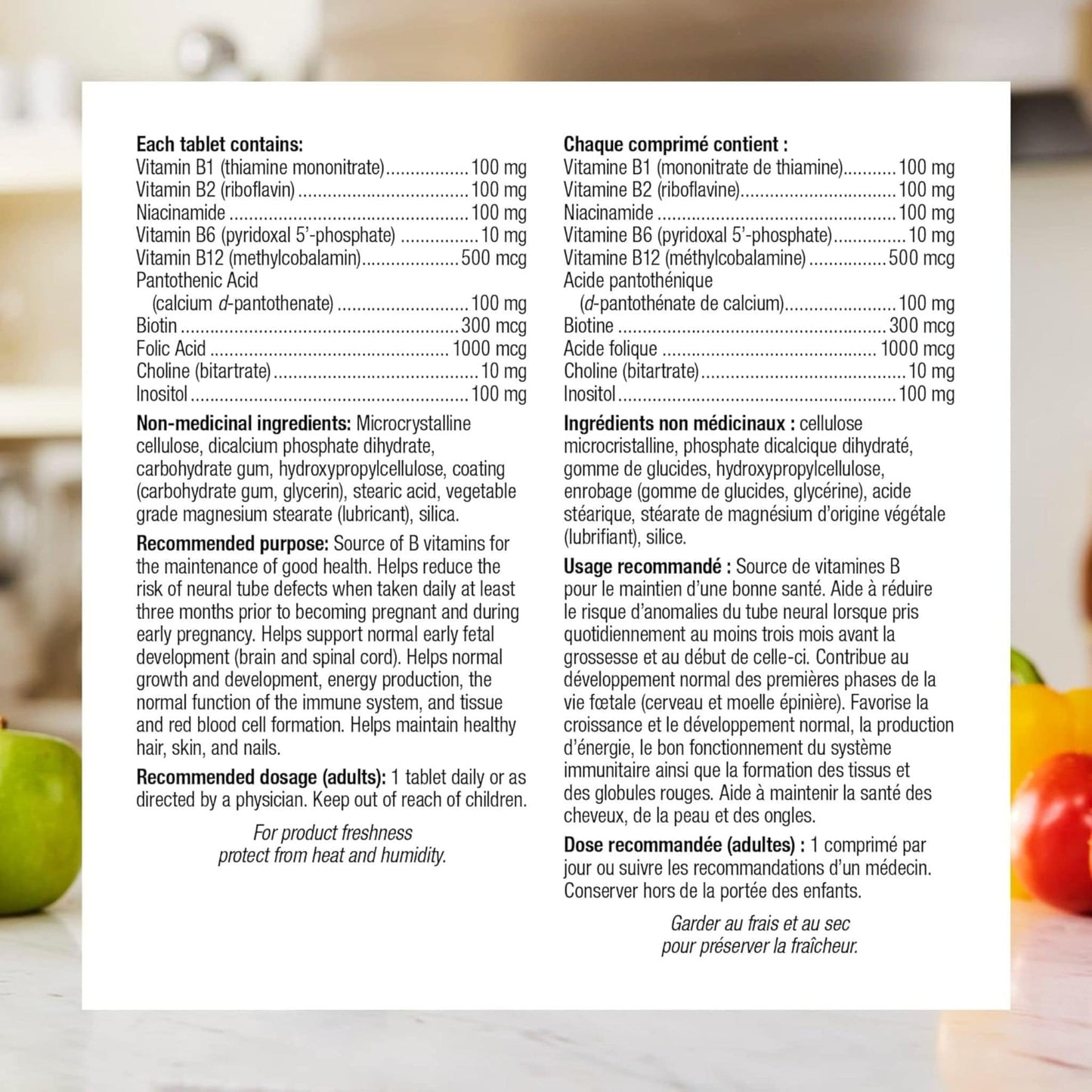 Timed Release B100 Complex from Webber Naturals offers a steady release of essential B vitamins throughout the day to support overall health, especially during periods of stress and increased physical activity. Each tablet provides 100 mg of vitamins B1, B2, B3, B5 (pantothenic acid), and inositol, 10 mg of bioactive vitamin B6, 1000 mcg of folic acid, 10 mg of choline, 500 mcg of bioactive vitamin B12, and 300 mcg of biotin. Together, these B vitamins support the metabolism of nutrients into energy.
