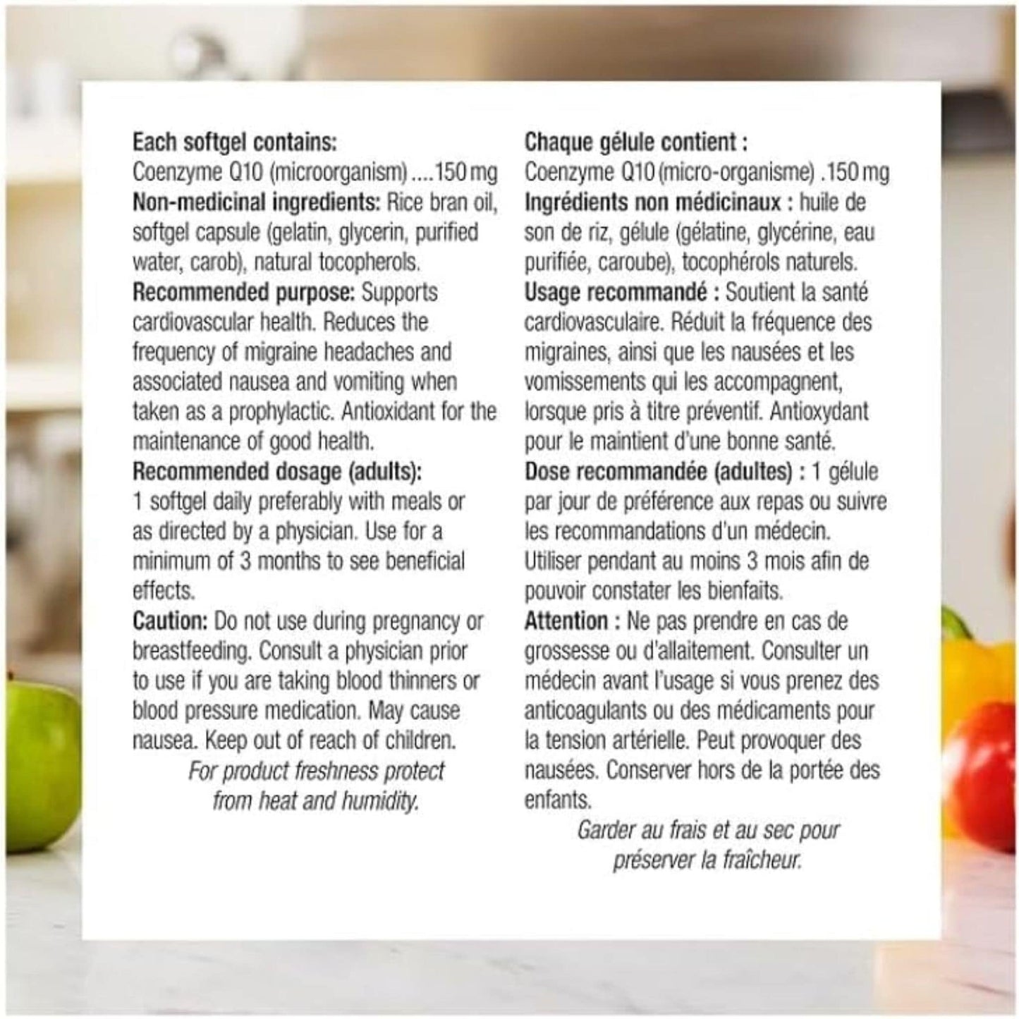 Adults: Take 1 Webber Naturals Coenzyme Q10 150mg softgel daily preferably with meals or as directed by a physician. For migraine prophylaxis: 1 softgel 2–3 times daily or as directed by a physician. Use for a minimum of 3 months to see beneficial effects.