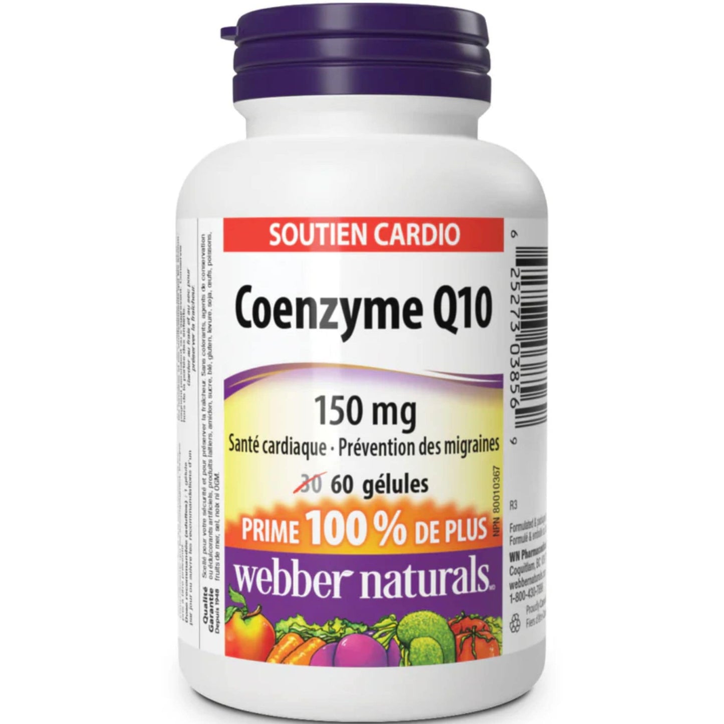 Webber Naturals Coenzyme Q10 150mg, BONUS SIZE, 100% More, 30+30 Softgels
