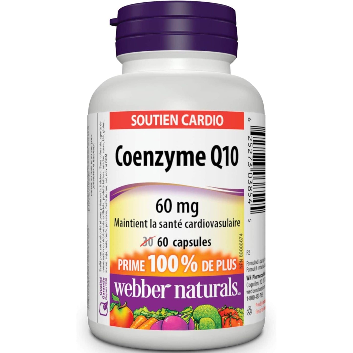 Webber Naturals Coenzyme Q10 60mg, BONUS SIZE, 100% More, 30+30 Capsules