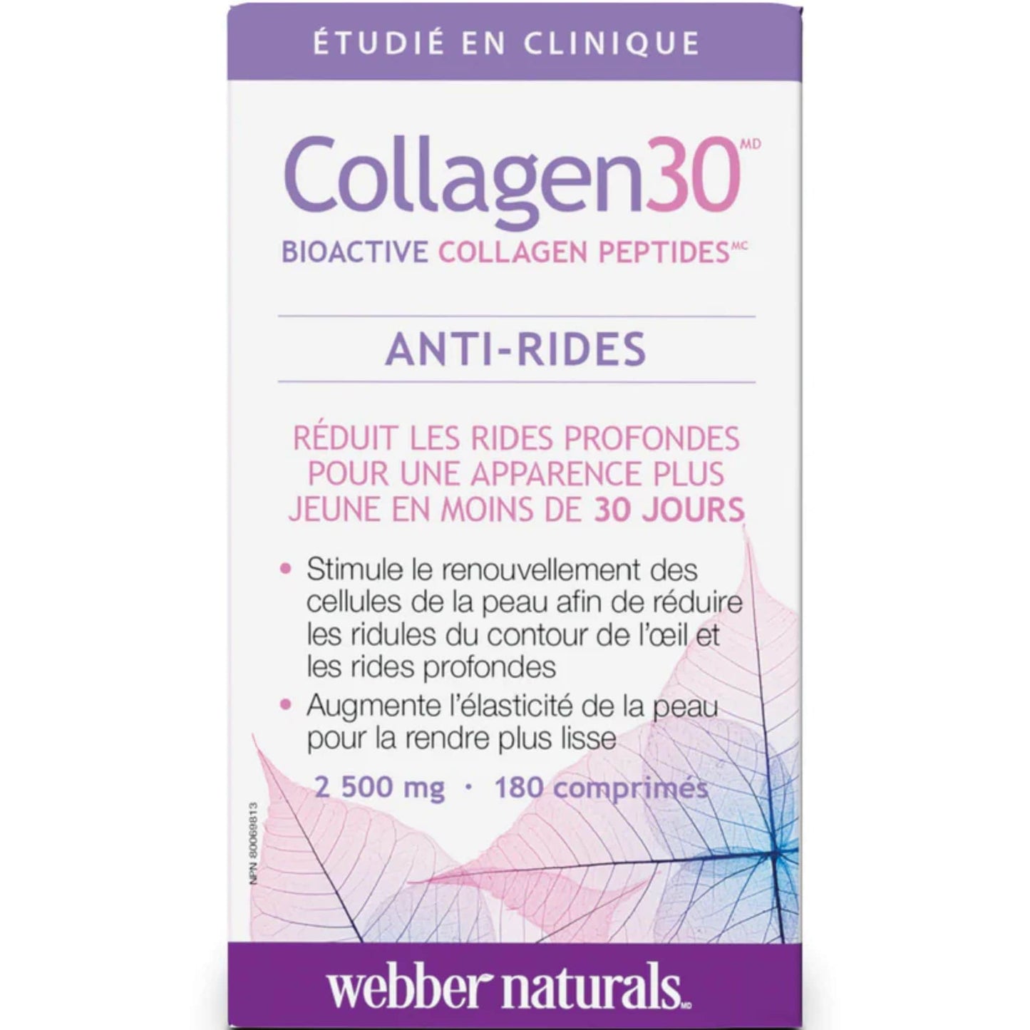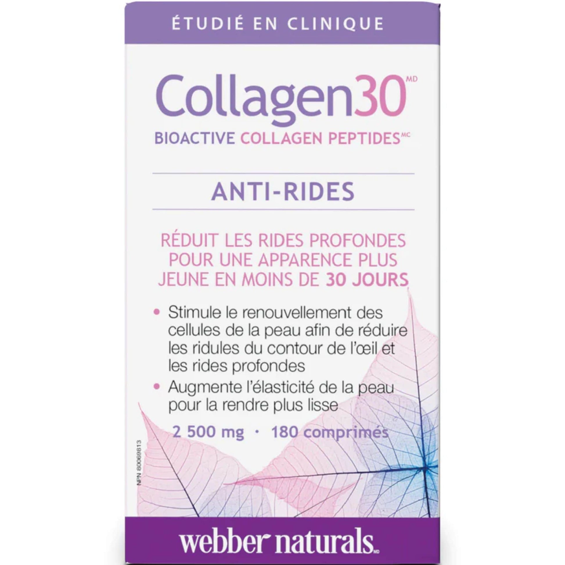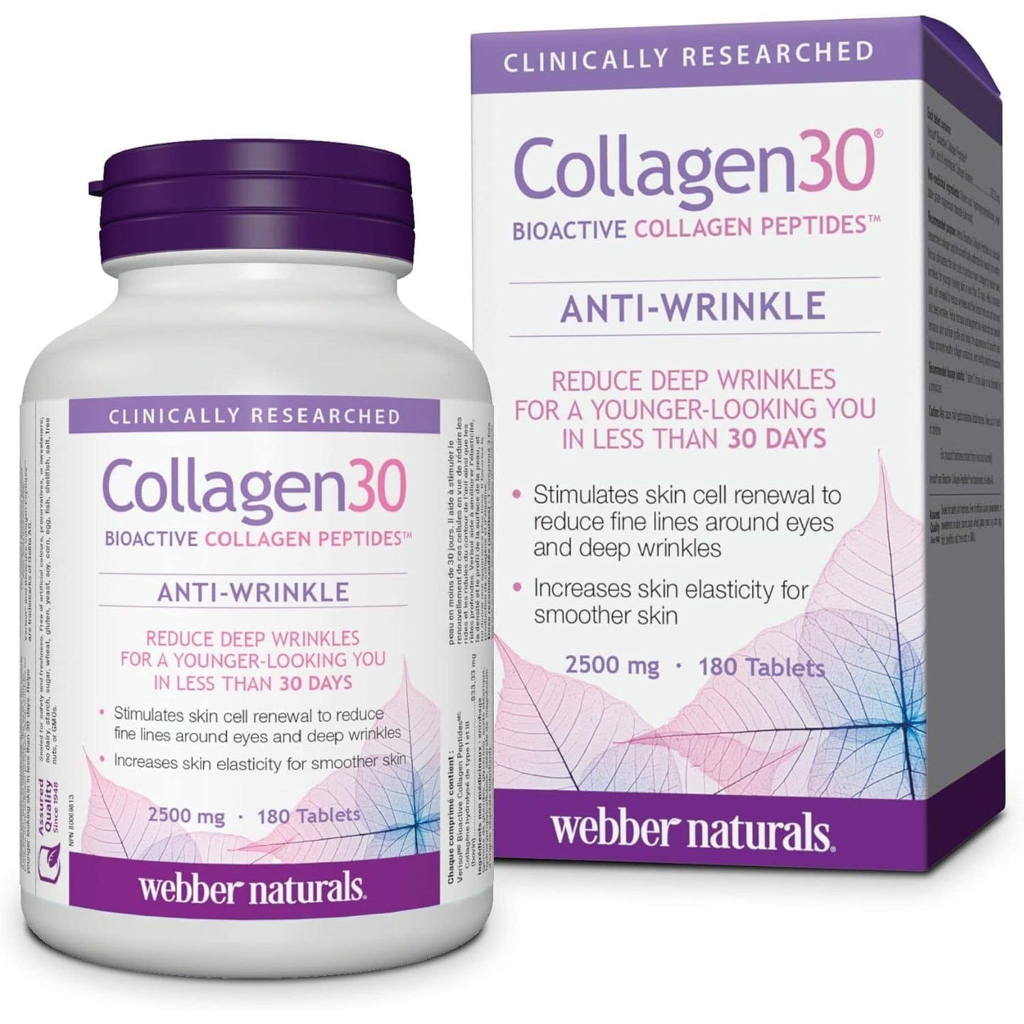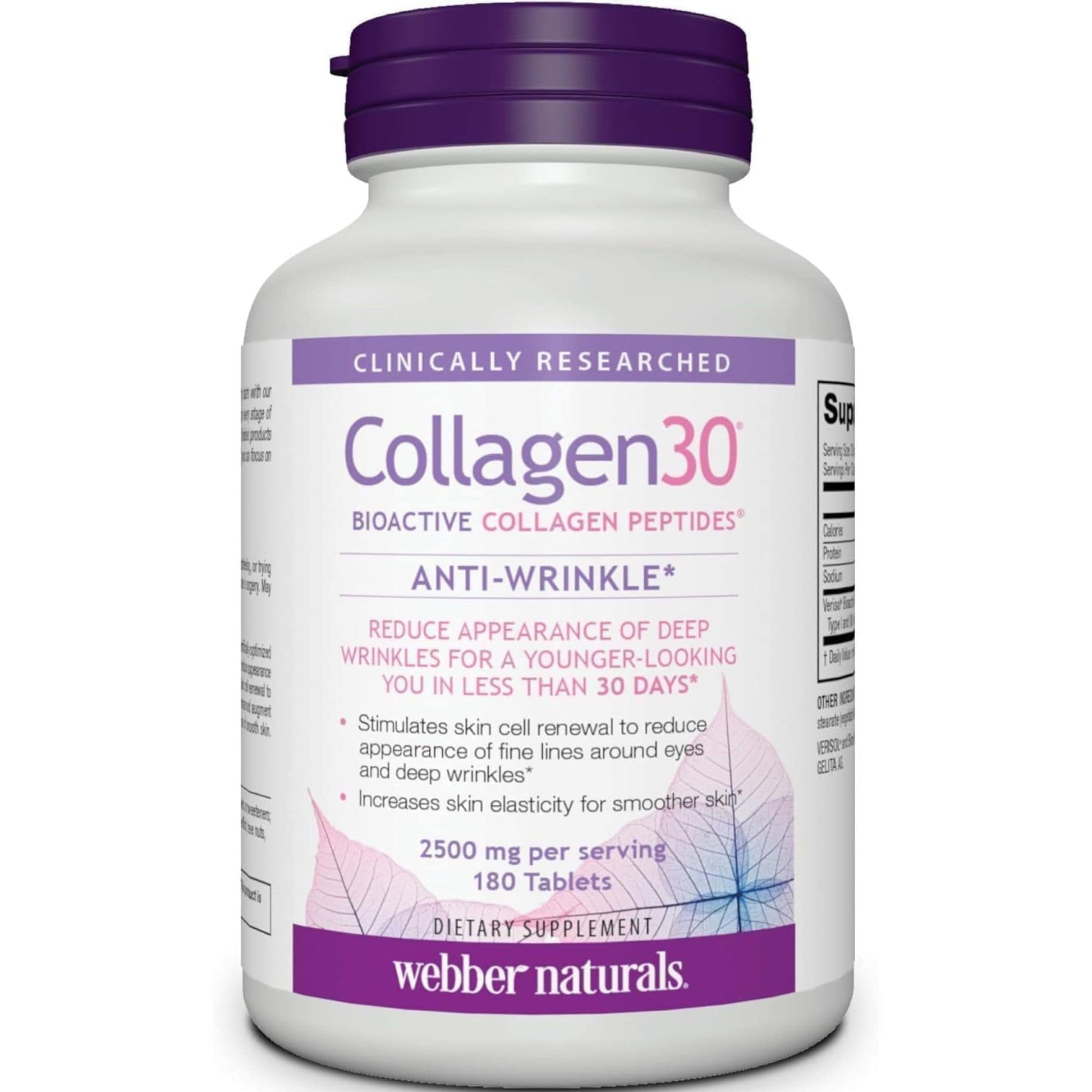 Collagen30 Bioactive Collagen Peptides Anti-Wrinkle from Webber Naturals is a collagen peptide supported by clinical research to reduce fine lines around eyes and deep wrinkles. Collagen30 Anti-Wrinkle stimulates skin cells to produce more collagen to promote the appearance of smooth, healthy looking skin, in less than 30 days.