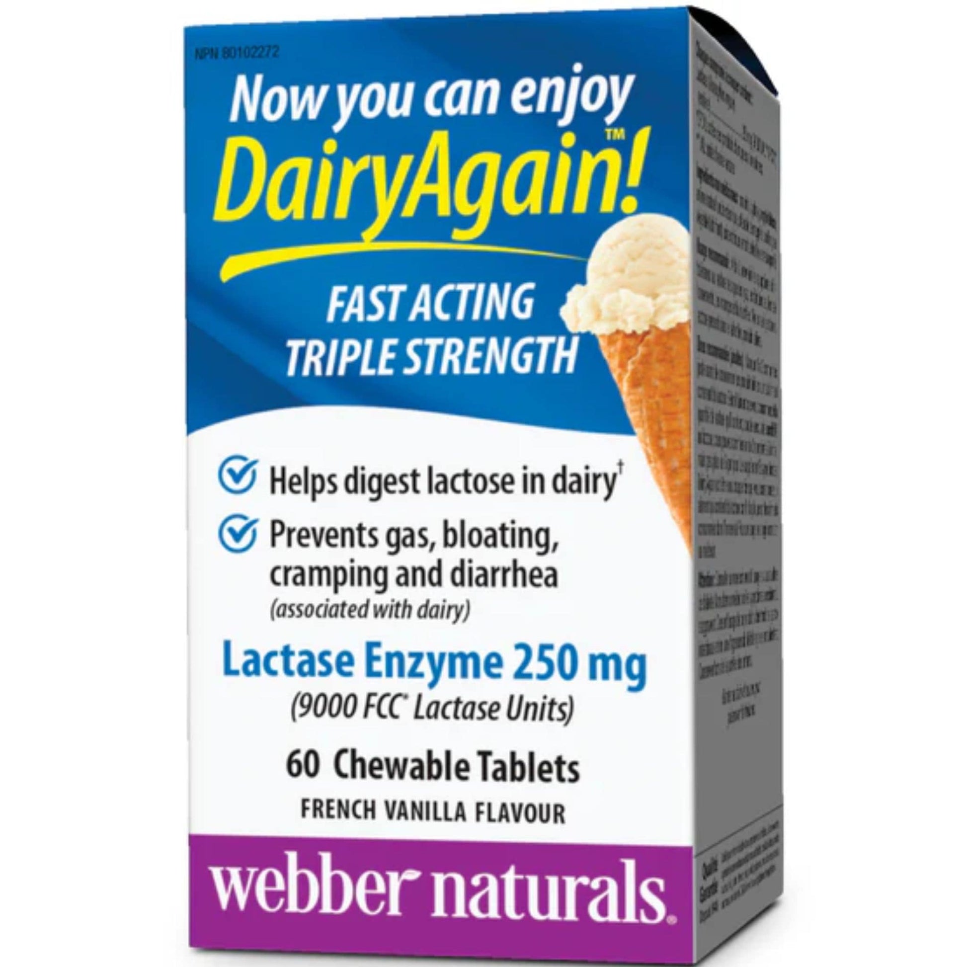 Webber Naturals Dairy Again, Lactase Enzyme 250mg, Helps Digest Lactose in Dairy, 60 Chewable Tablets