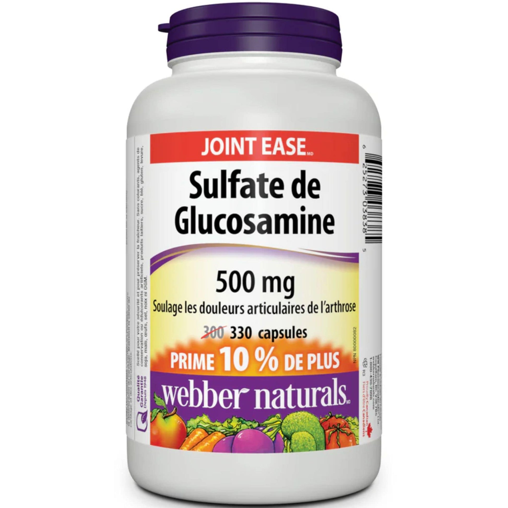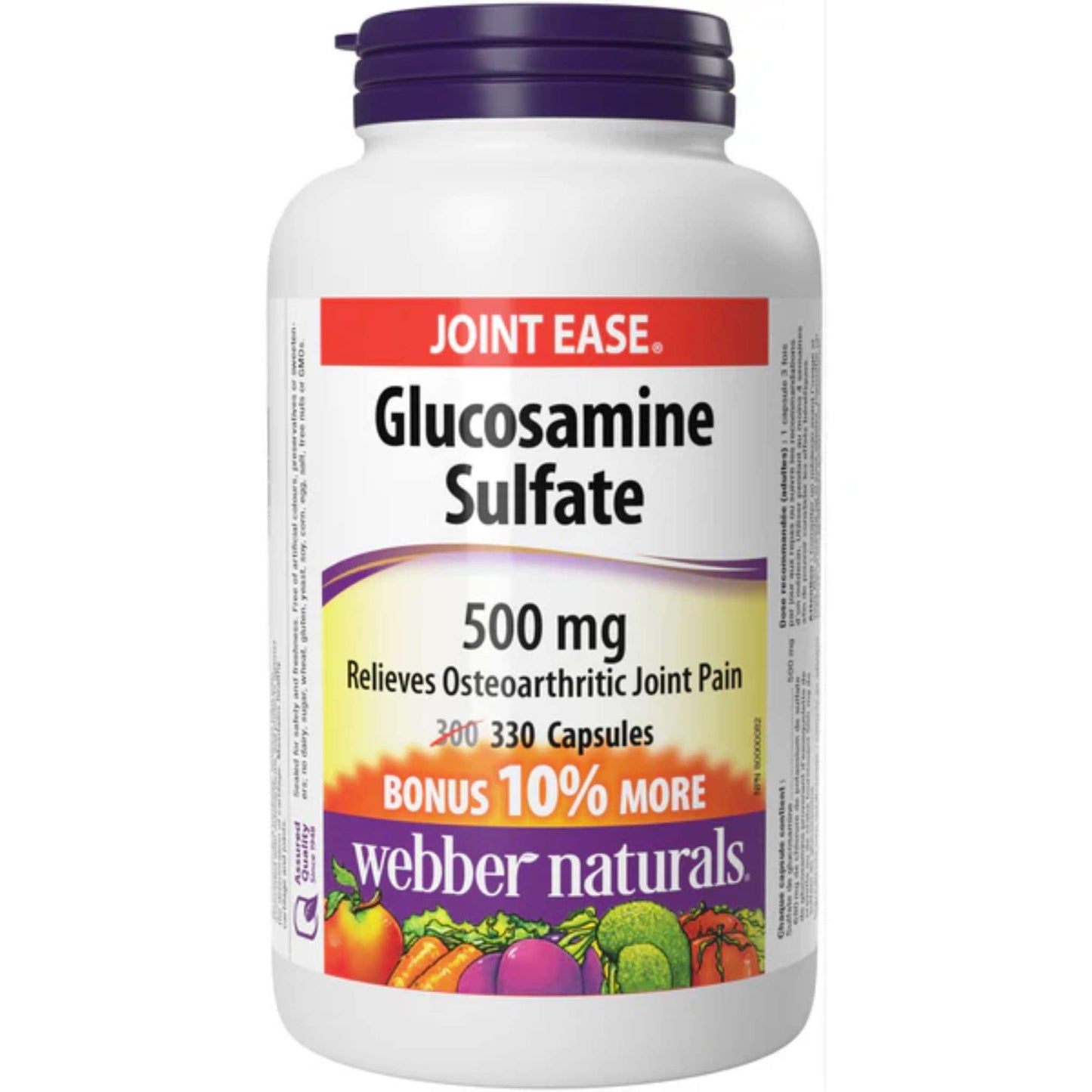 Webber Naturals Glucosamine Sulfate 500mg is the #1 selling joint care product in Canada. This super-size pack offers 360 caplets, each containing 500 mg of glucosamine sulfate, to support joint health, reduce pain, and improve mobility.