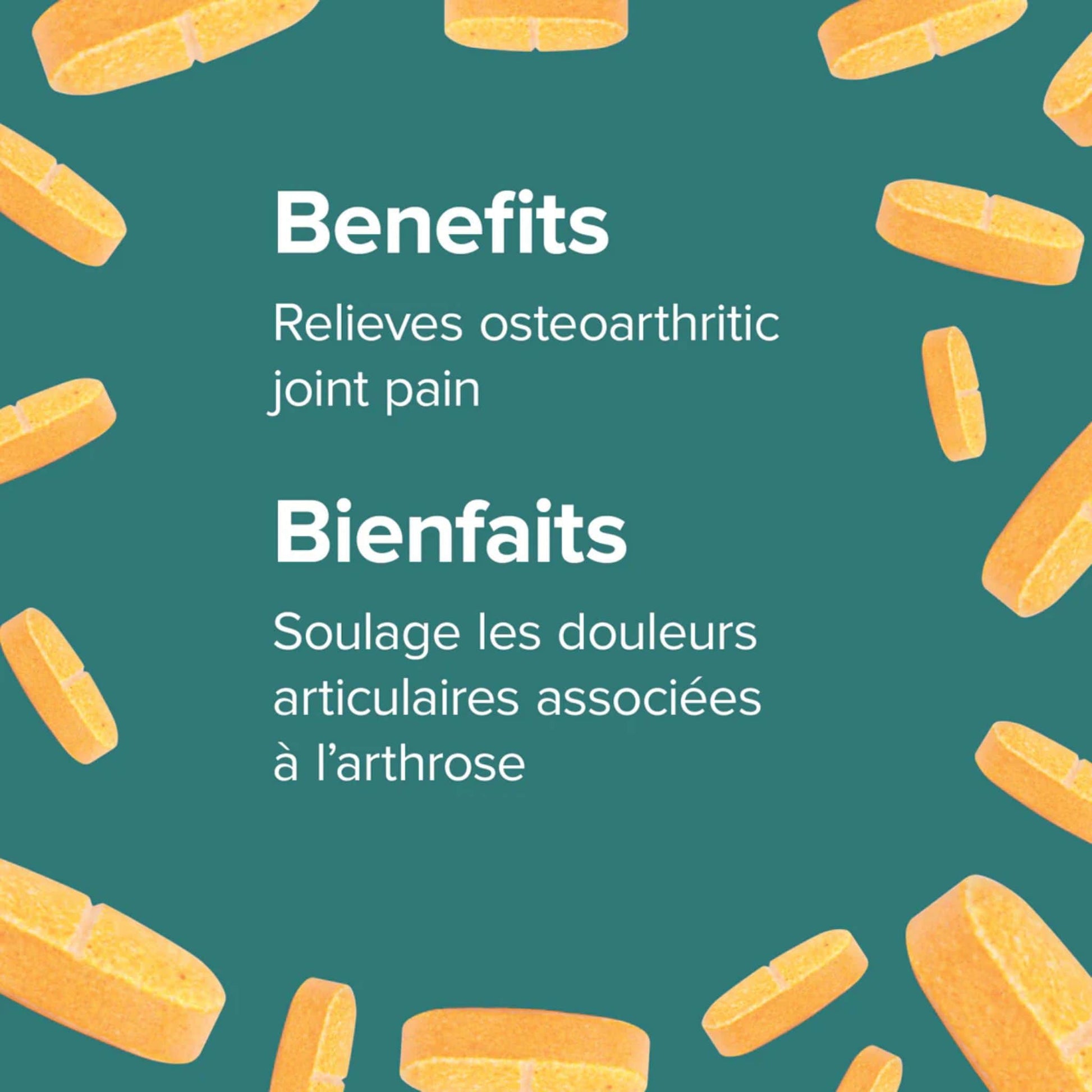 Glucosamine Turmeric from Webber Naturals helps relieve joint and knee pain associated with osteoarthritis. It provides the therapeutic benefits of 750 mg of glucosamine sulfate to help protect against cartilage deterioration, ease pain, and improve joint function, plus turmeric extract for antioxidant support. Imagine relief from joint pain!