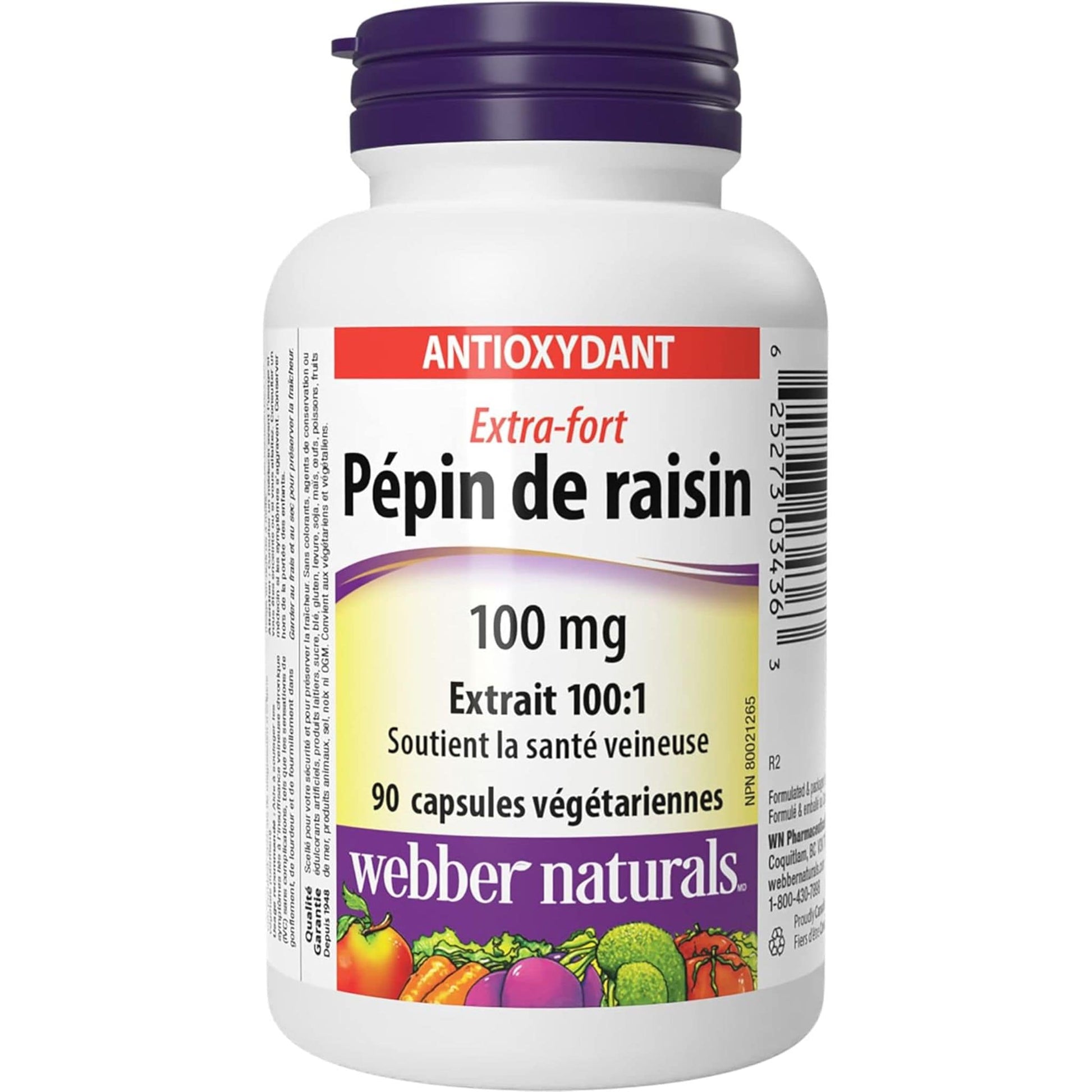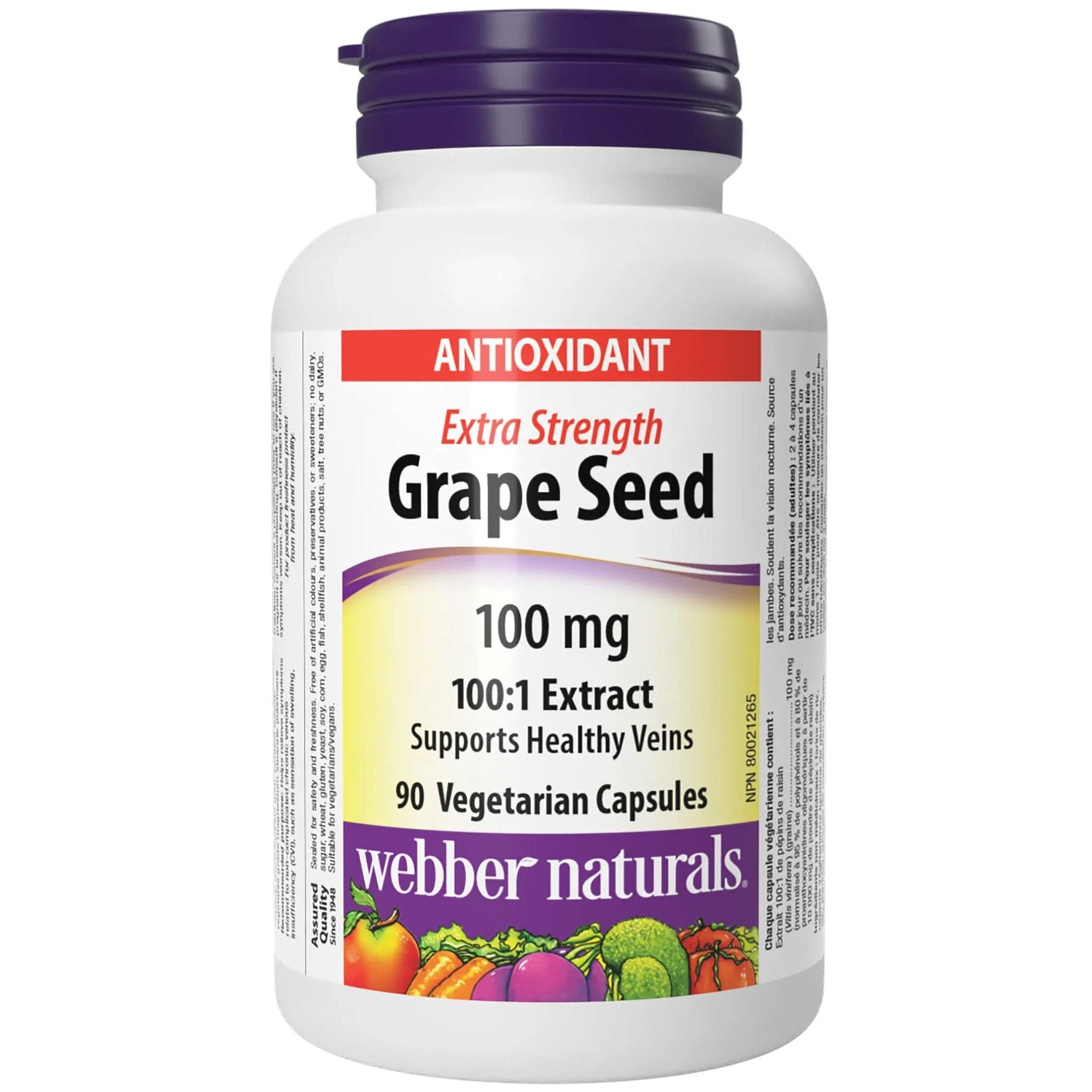 Webber Naturals Grape Seed 100mg Extra Strength, Supports Healthy Veins, 90 Vegetable Capsules