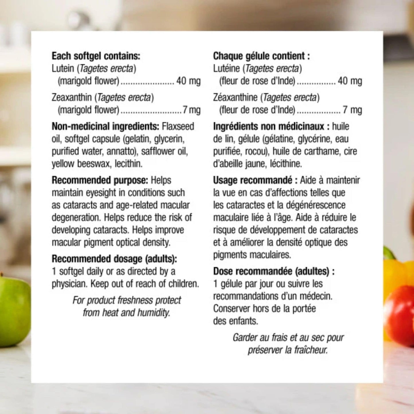 - Maximum-strength formula with 40 mg of lutein and 7 mg of zeaxanthin per softgel.
