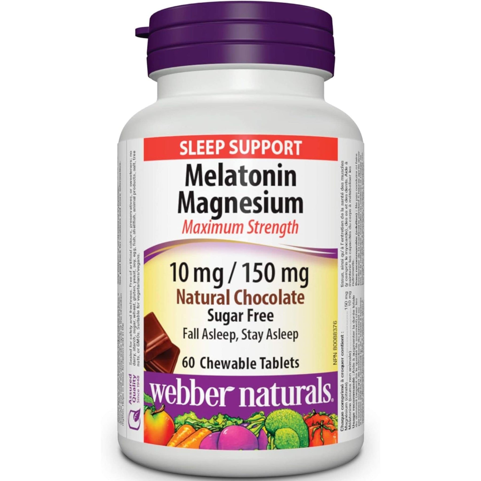 Webber Naturals Melatonin Magnesium, 10mg /150mg, Sugar Free, 60 Chewable Tablets