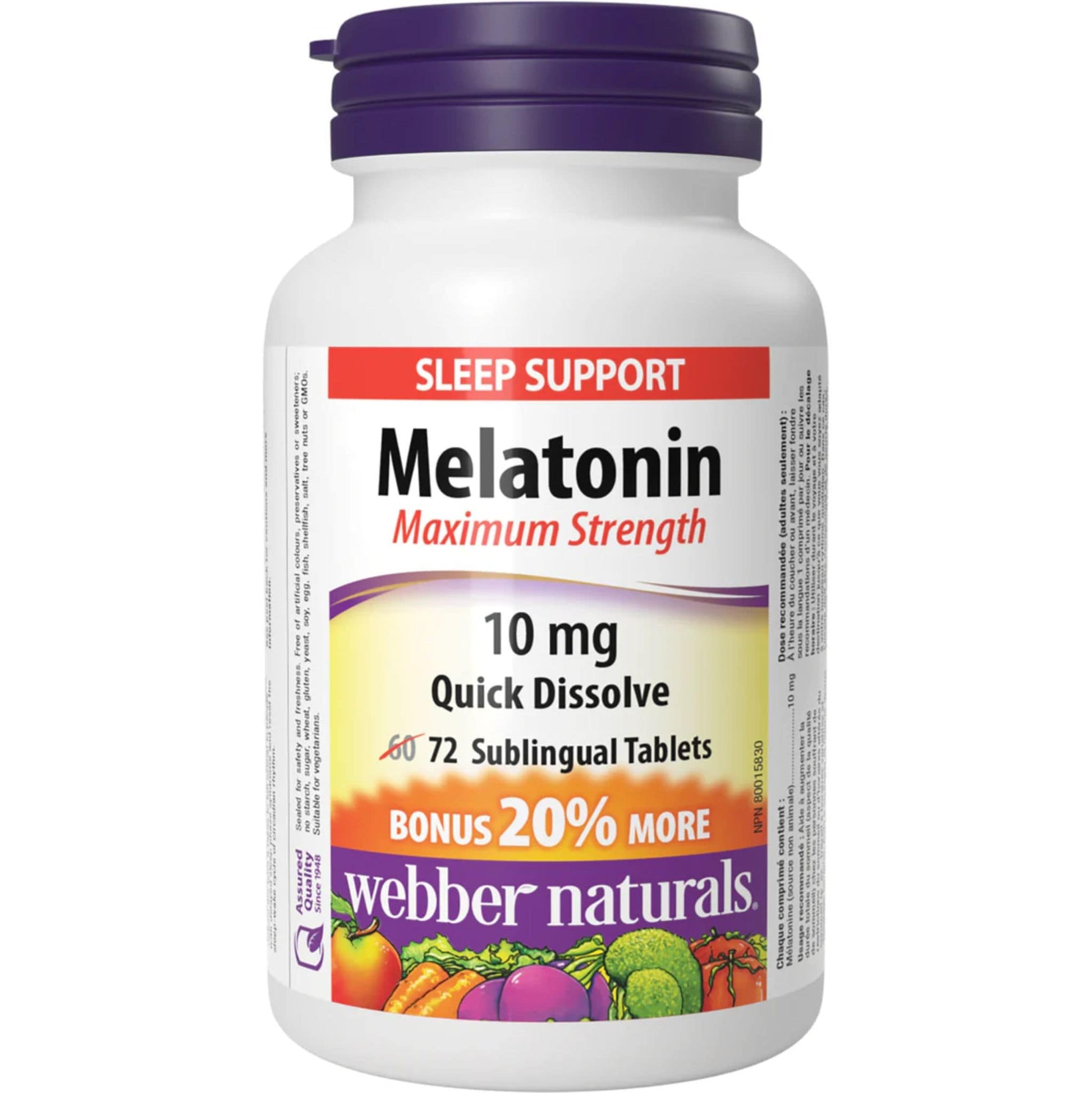 72 Sublingual Tablets | Webber Naturals Melatonin 10mg Maximum Strength Quick Dissolve