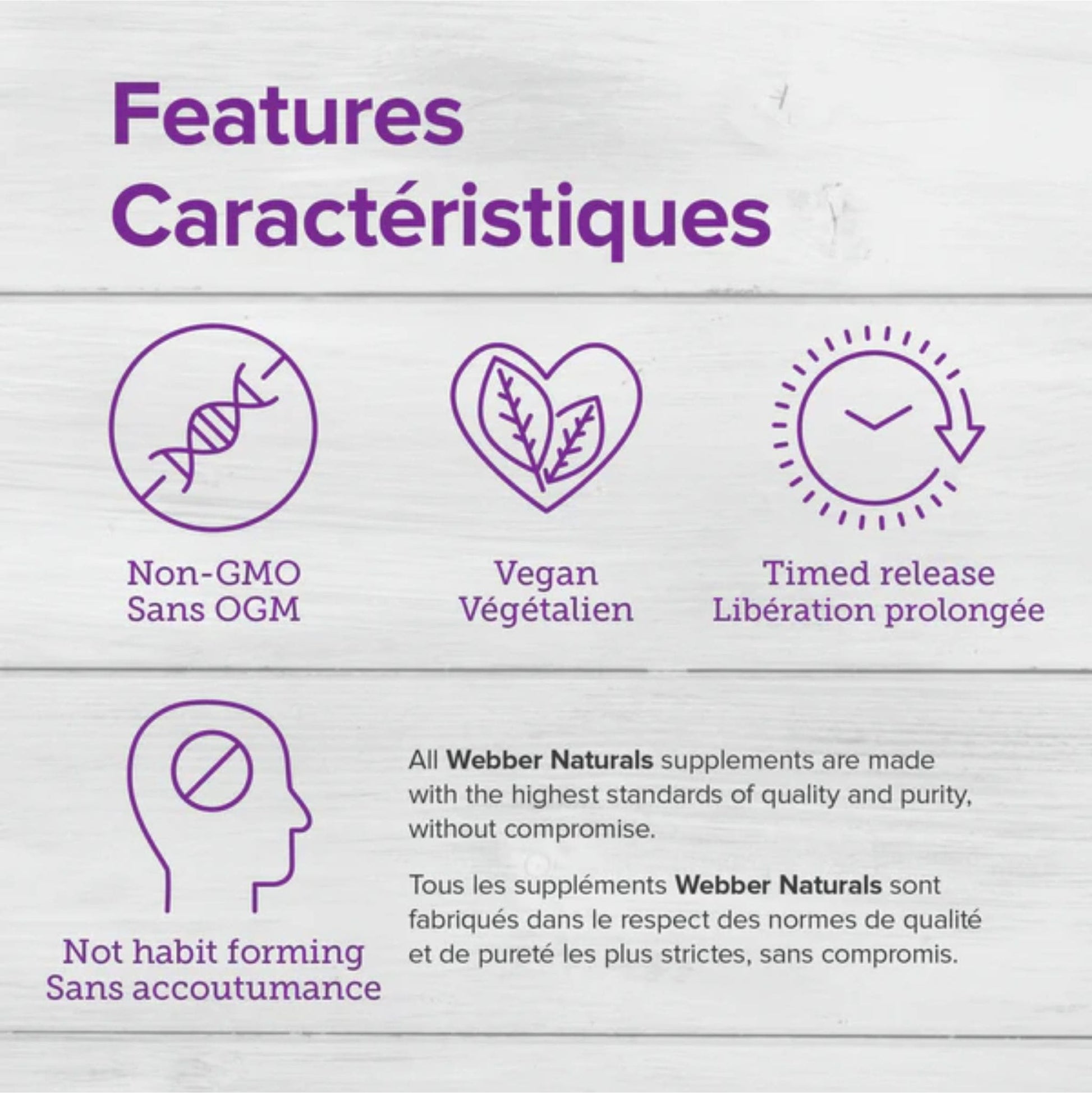 Unwind into a world of restful sleep with Webber Naturals Melatonin 10mg, specially crafted to enhance your sleep experience. Melatonin, a key sleep-regulating hormone, plays a pivotal role in syncing our internal clock for optimal sleep, improved sleep quality, and reduced time to fall asleep.