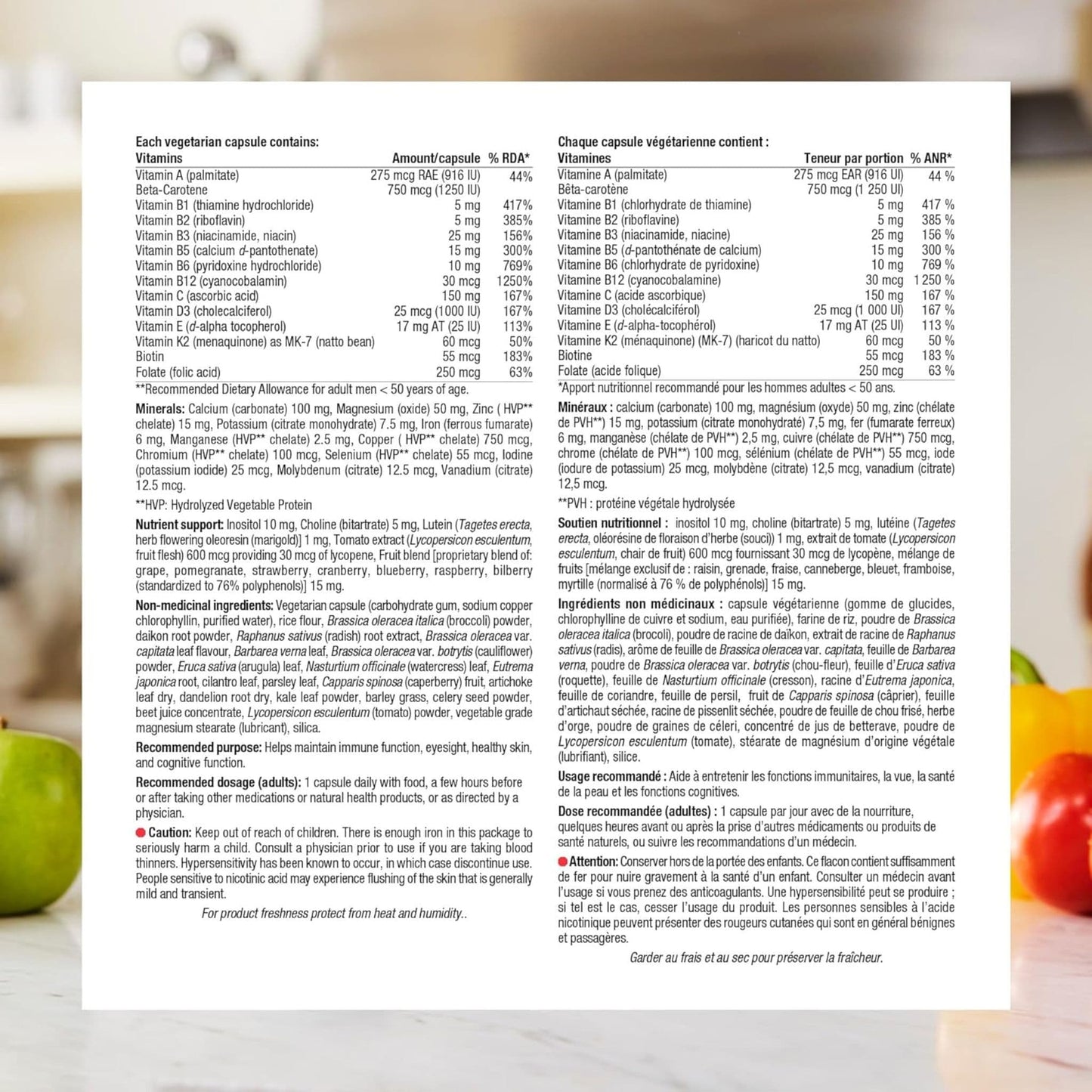 - Provides 100% of all daily vitamin and mineral needs in a wholesome fruit and vegetable base