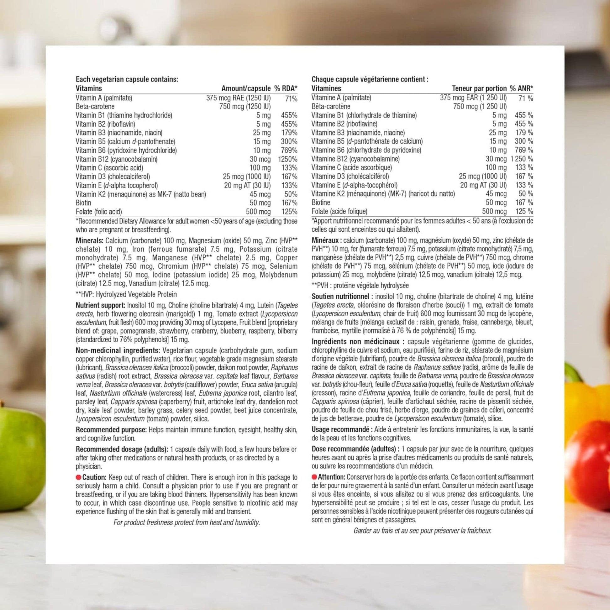 This formula also features the antioxidant lutein to support eye health, as well as myriad nutrient compounds from cruciferous vegetables to support normal detoxification processes.