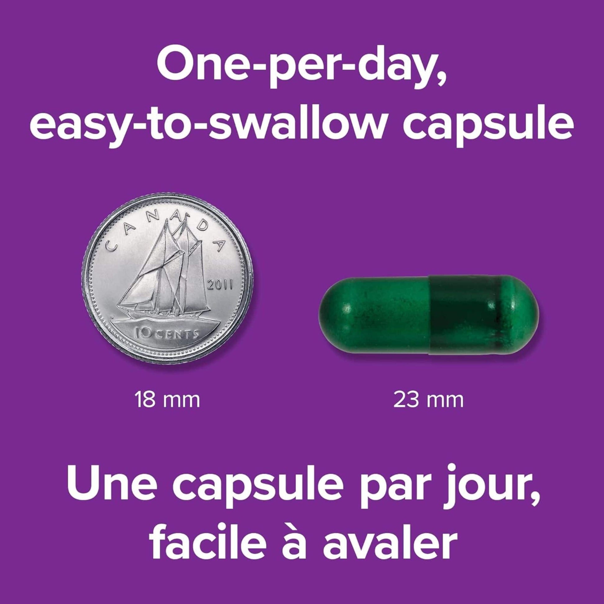 - Convenient one-per-day formula in easy-swallow vegetarian capsules