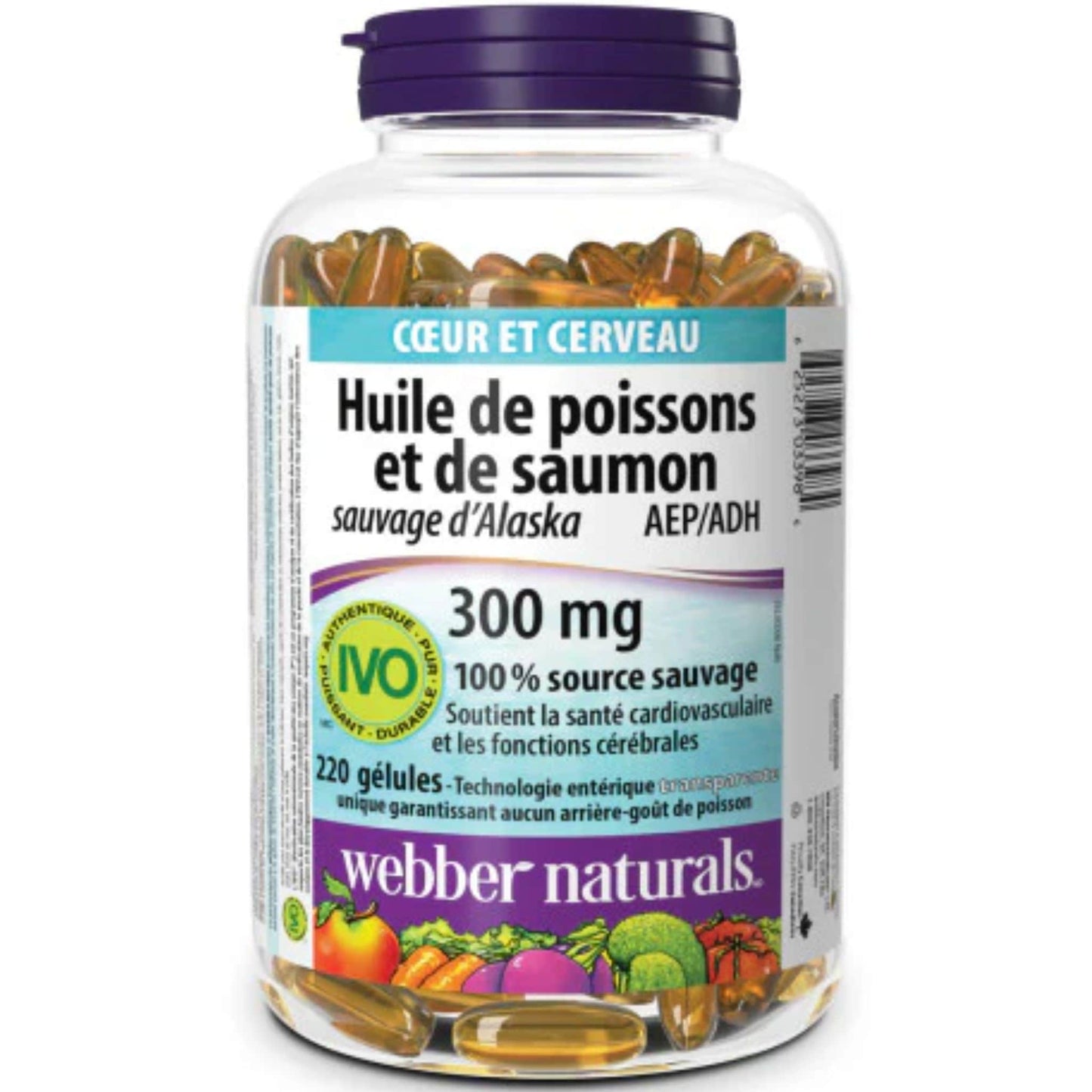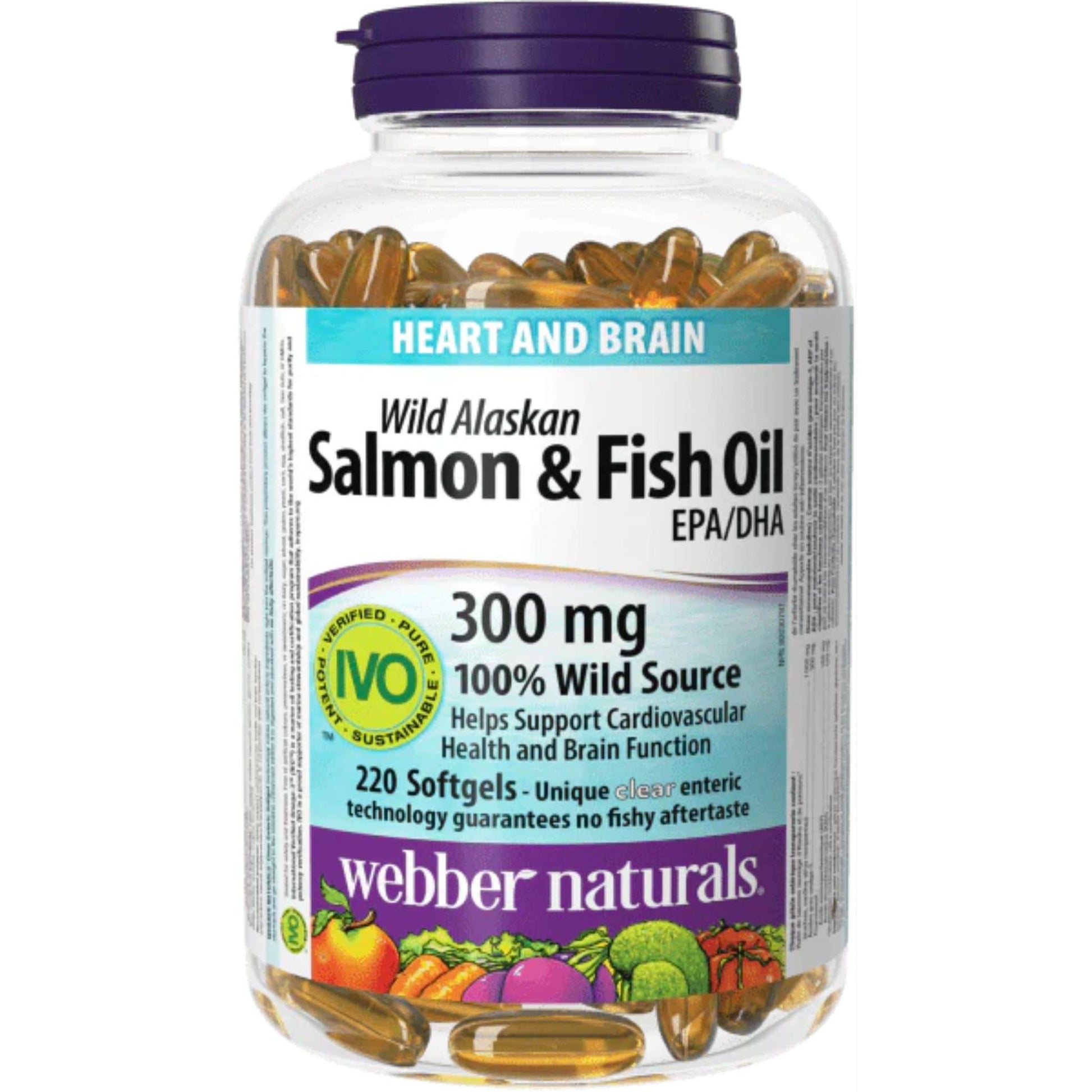 Webber Naturals Wild Alaskan Salmon and Fish Oil, Omega 3 300mg, EPA 180mg, DHA 120mg, Pharmaceutical Grade, 220 Clear Enteric Softgels
