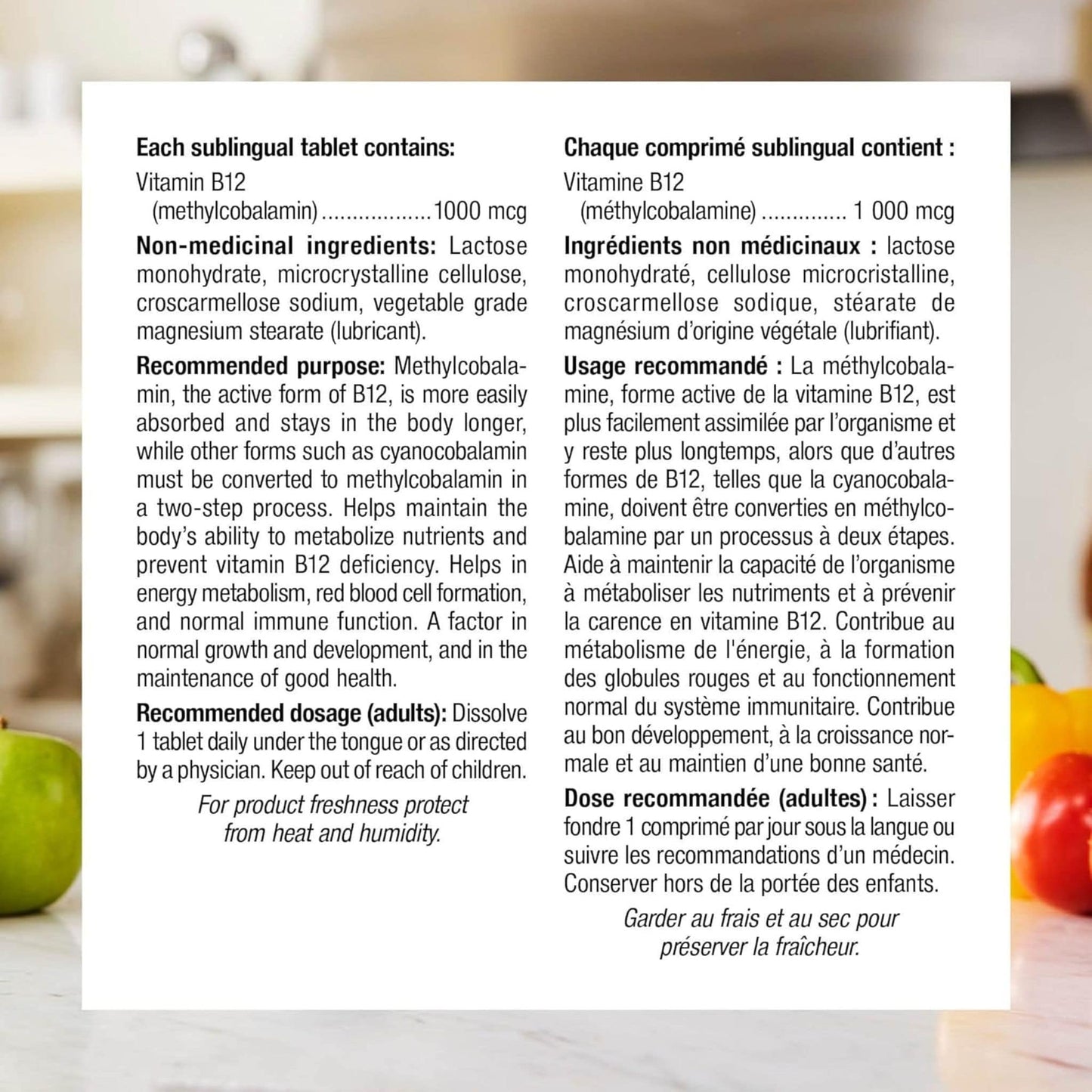Methylcobalamin sublingual tablets from webber naturals simply dissolve under your tongue. Daily use keeps blood levels of B12 high. B12 can help improve mood and increase energy as it supports normal metabolism.