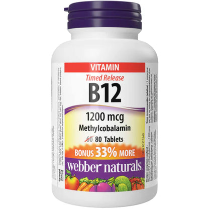 Webber Naturals Vitamin B12, Methylcobalamin 1200mcg, Timed Release Tablets