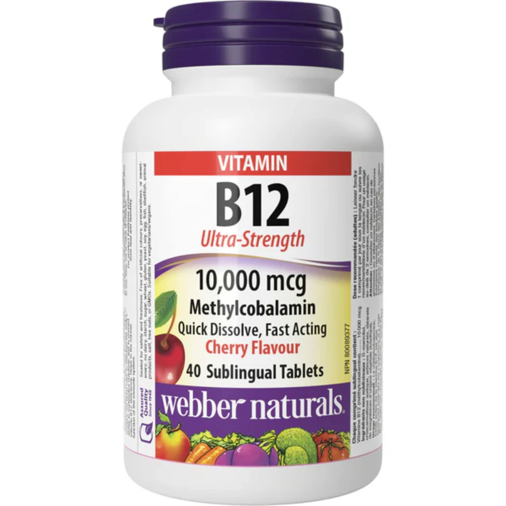 Webber Naturals Vitamin B12 Ultra Strength 10,000mcg, 40 Sublingual Tablets