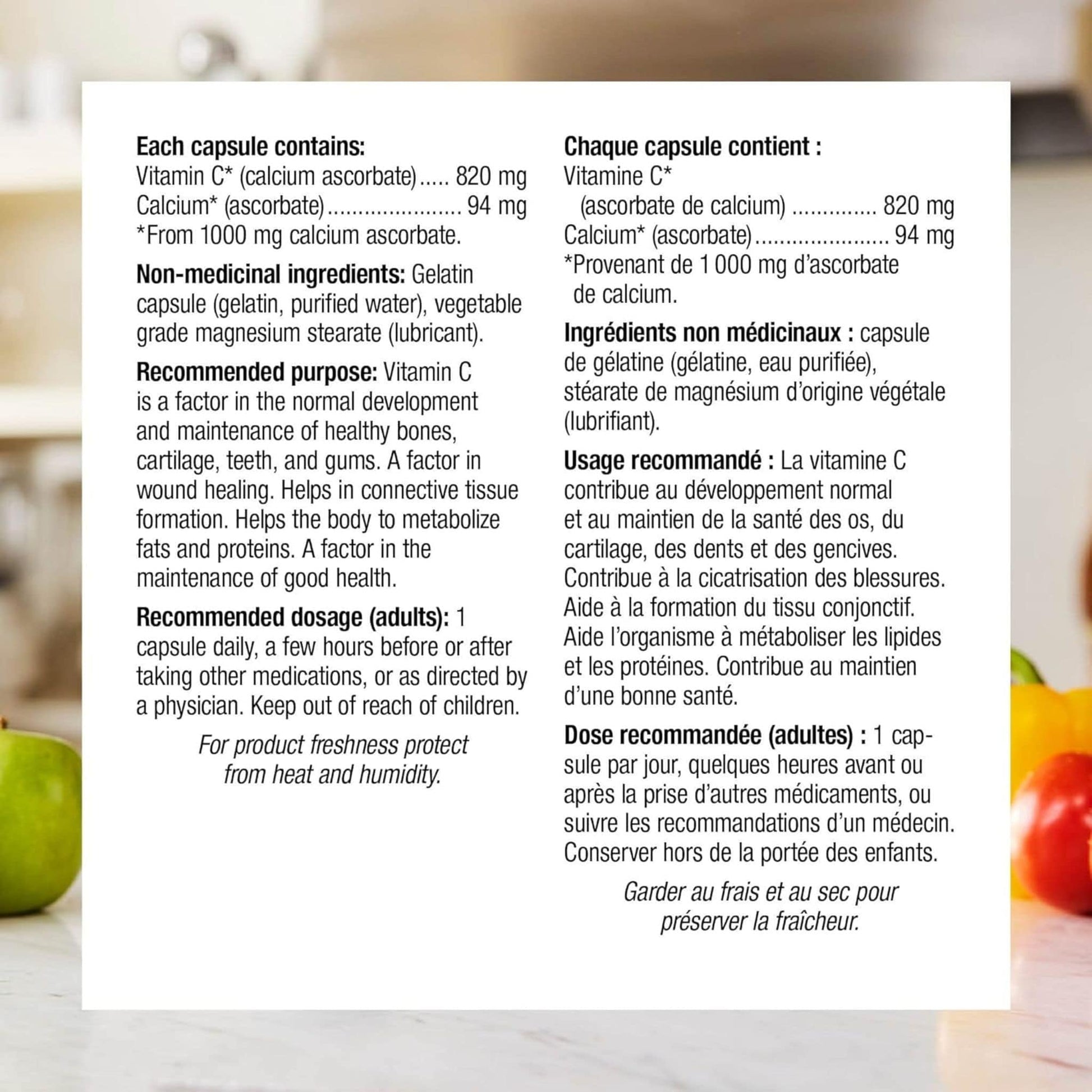 | Vitamin C* (calcium ascorbate) | 820 mg | |