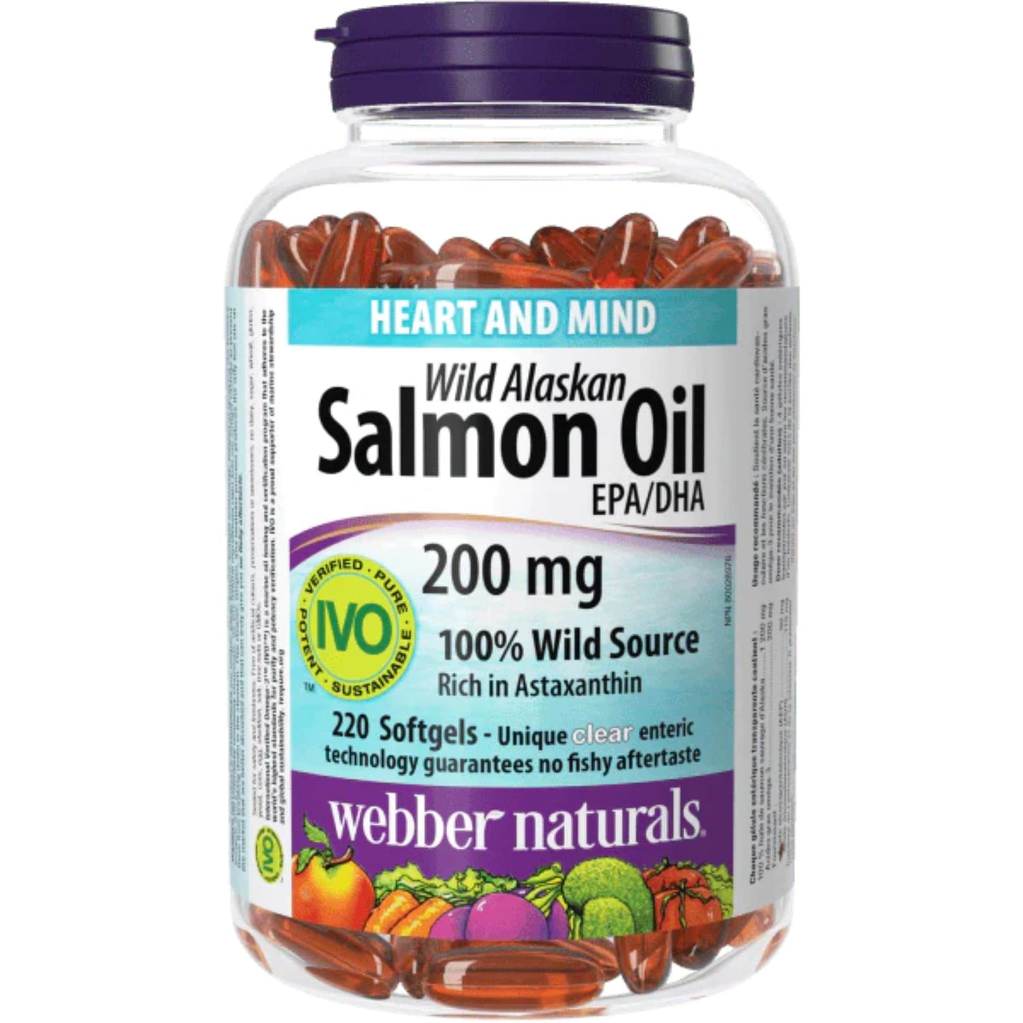 Webber Naturals Wild Alaskan Salmon Oil, 200mg, 220 Clear Enteric Softgels