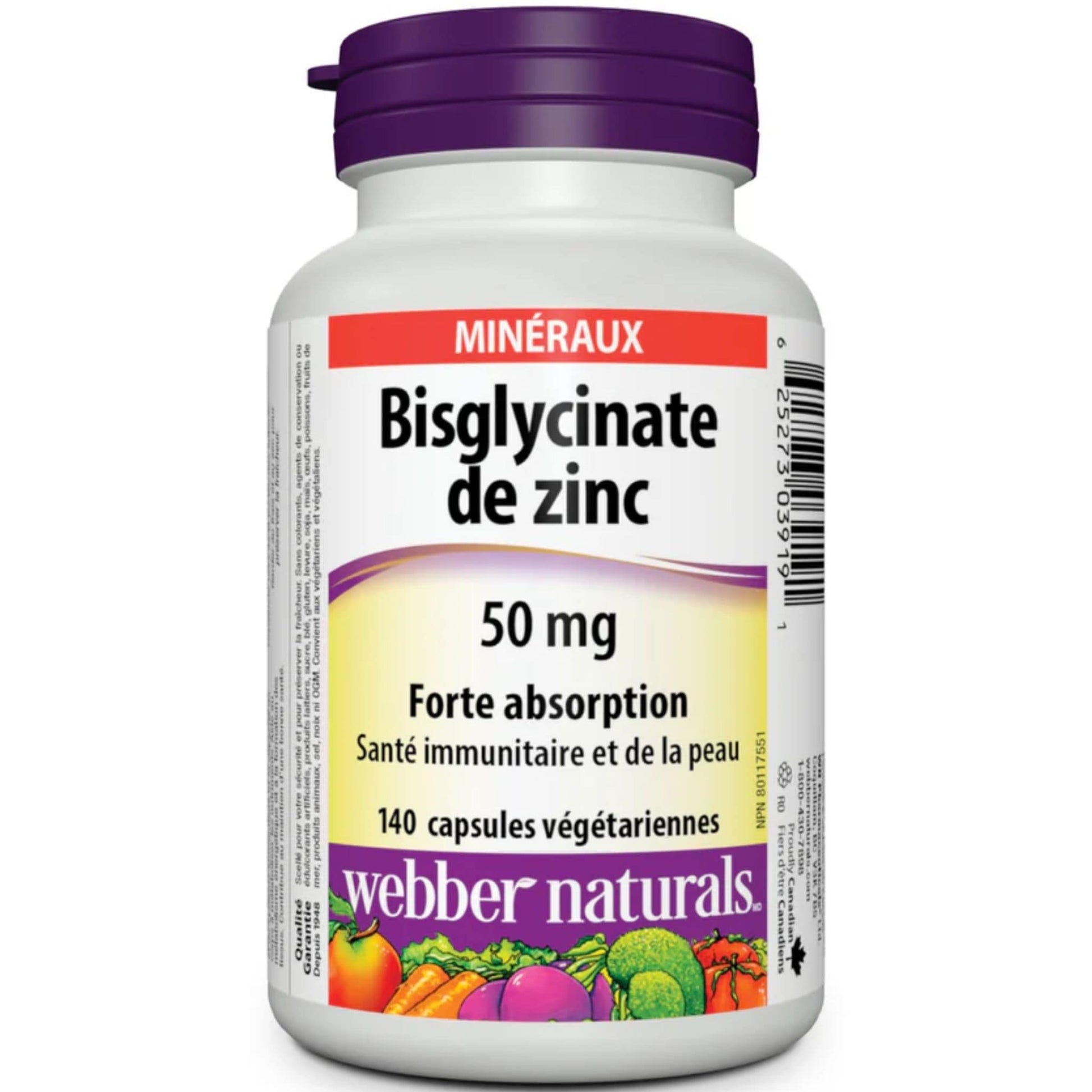 Webber Naturals Zinc Bisglycinate 50mg High Absorption, Vegetable Capsules Details