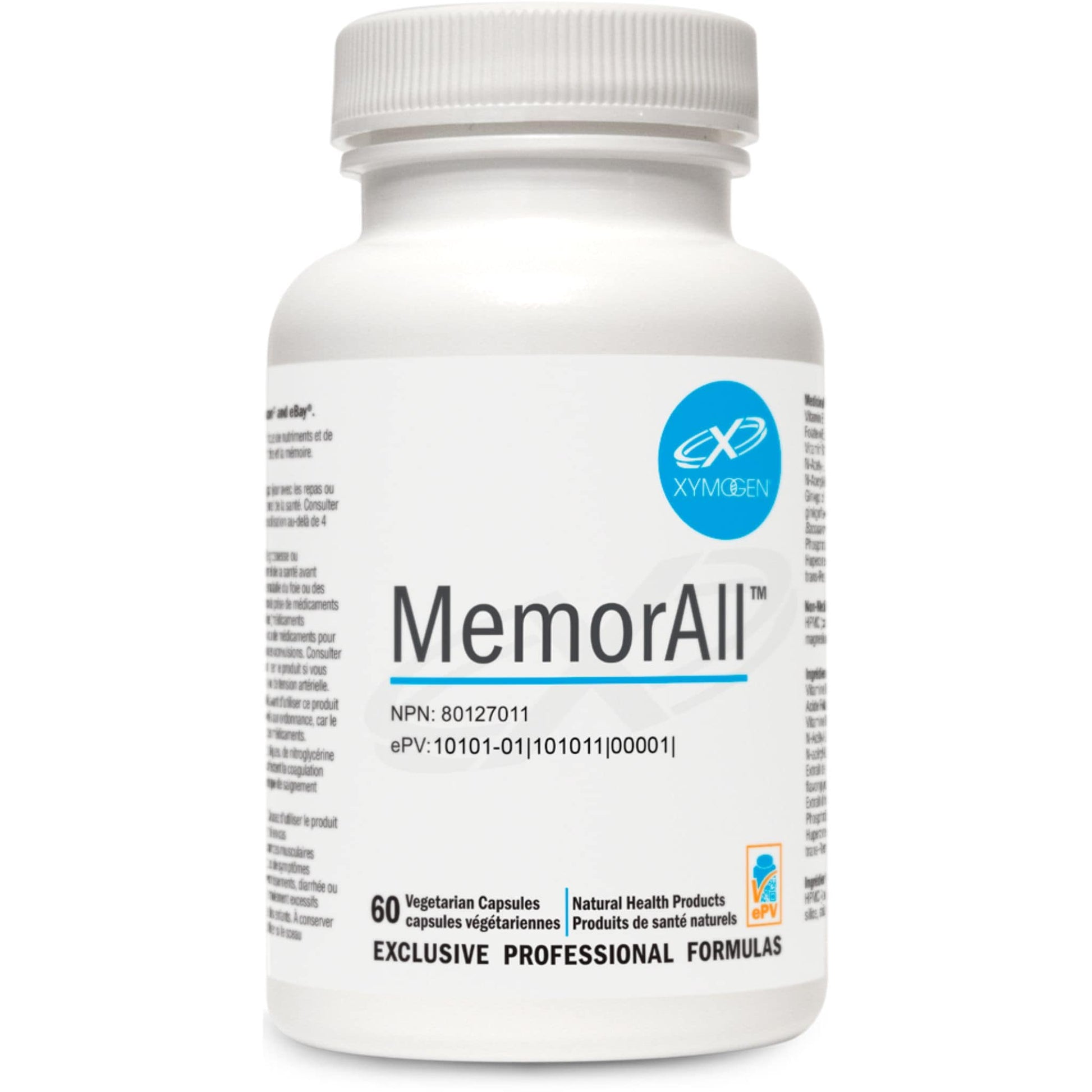 Xymogen MemorAll supports cognitive function and memory with a unique blend of nutrients and botanicals.