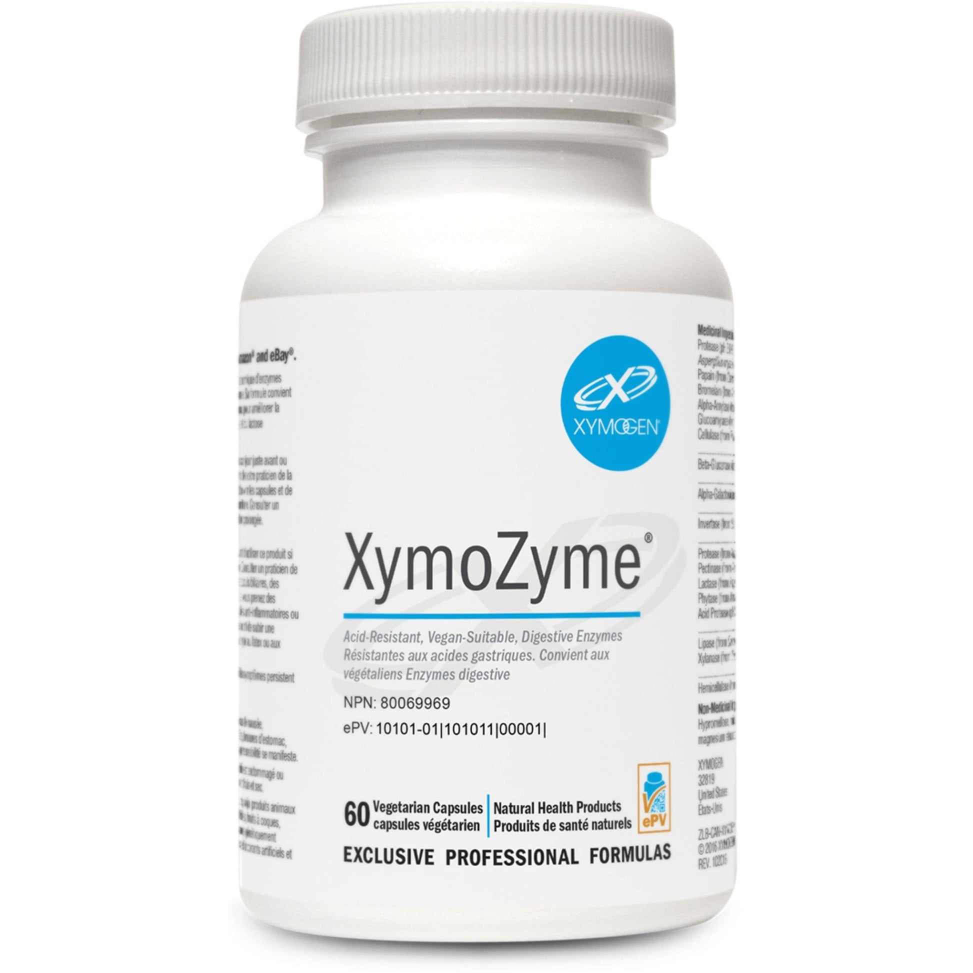 Xymogen XymoZyme is a comprehensive, non-prescription digestive enzyme formula suitable for vegans, designed to support the digestion of fats, carbohydrates, fiber, and lactose.